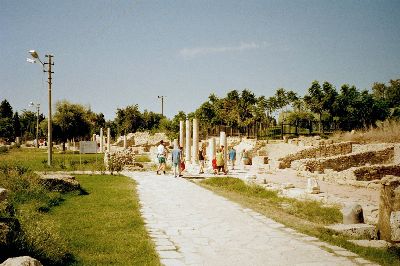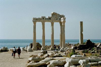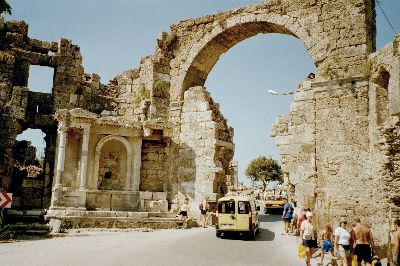 Beginnt man seine Tour an der Dolmus-Station in Side und macht sich von dort aus zu Fuß auf den Weg ins Zentrum, so kommt man nach wenigen Metern auf die Kolonnaden Straße.