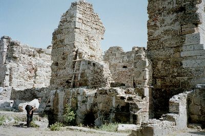 An dieser Stelle befindet sich der Tempel des Apollon, der Gott des Lichtes, der Schönheit und der Kunst sowie die Übereste des Tempels der Athena, Tochter des Zeus, Göttin der Wissenschaft, Wahrheit und Jungfräulichkeit – beides Hauptgötter der Stadt Side. Neben den beiden Tempeln wurde in byzantinischer Zeit eine Basilika errichtet. Teile der beiden Tempel wurden abgerissen und in ein Atrium für die Basilika umgewandelt.